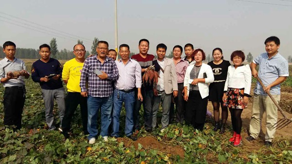 2015年10月5日下午,應(yīng)石家莊新樂(lè)市木村張紅江邀請(qǐng),來(lái)自鄭州、商丘、內(nèi)黃、鶴壁、開封、石家莊、藁城等地20余人,參加禾下土提供的脫毒紫菁2號(hào)商品紅薯觀摩會(huì)。