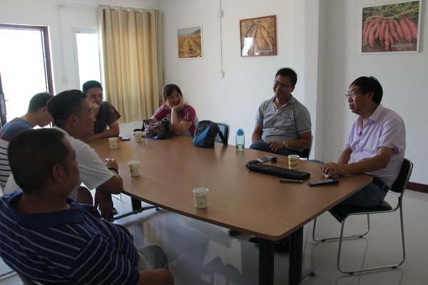 2016年9月2日,河北威遠生化農(nóng)藥有限公司華北區(qū)工作組一行6人到禾下土脫毒甘薯原種薯基地現(xiàn)場觀摩,邯鄲市禾下土種業(yè)有限公司總經(jīng)理崔伏喜陪同參觀。工作組詳細了解了禾下土脫毒甘薯原種薯生產(chǎn)基地在科研育種、標準化生產(chǎn)、病蟲草害防治的工作開展情況,并圍繞脫毒甘薯產(chǎn)業(yè)在紅薯專用生物農(nóng)藥、生物肥料等方面進行了深入探討。