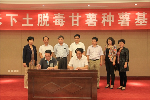2015年9月24日在"2015年禾下土脫毒甘薯種薯基地觀摩會"召開期間,《邯鄲市禾下土種業(yè)有限公司與中國農(nóng)科院甘薯研究所所企合作框架協(xié)議》簽約儀式在磁縣溢泉湖嵩景樓國際會議中心隆重舉行。邯鄲市禾下土種業(yè)有限公司總經(jīng)理崔伏喜與徐州市農(nóng)科院副院長李強分別代表雙方簽署《所企合作框架協(xié)議》。國家甘薯產(chǎn)業(yè)技術研發(fā)中心綜合實驗室主任、崗位科學家李洪民研究員、國家甘薯產(chǎn)業(yè)技術體系崗位科學家、河南省農(nóng)科院植保所所長張振臣、國家甘薯產(chǎn)業(yè)技術體系石家莊綜合試驗站站長、崗位科學家張松樹研究員、河南省商丘市農(nóng)科院副院長楊愛梅研究員出席簽字儀式。《所企合作框架協(xié)議》是中國農(nóng)科院甘薯研究所與邯鄲市禾下土種業(yè)有限公司為促進脫毒甘薯產(chǎn)學研合作,共同推動脫毒甘薯產(chǎn)業(yè)的健康發(fā)展而簽訂的戰(zhàn)略合作協(xié)議。該協(xié)議將充...
