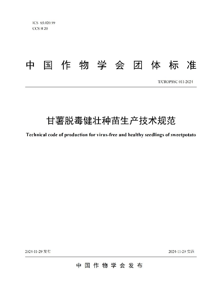 為加快推動(dòng)甘薯脫毒健壯種苗生產(chǎn)技術(shù)規(guī)范化,促進(jìn)我國甘薯產(chǎn)業(yè)的高質(zhì)量發(fā)展,中國作物學(xué)會(huì)甘薯專業(yè)委員會(huì)、江蘇徐淮地區(qū)徐州農(nóng)業(yè)科學(xué)研究所、邯鄲市禾下土種業(yè)有限公司共同起草的《甘薯脫毒健壯種苗生產(chǎn)技術(shù)規(guī)范》團(tuán)體標(biāo)準(zhǔn)正式對(duì)外公布。全文如下
