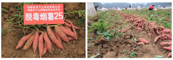 煙薯25肉色美觀漂亮,蒸煮后呈金黃色,其鮮薯胡蘿卜素含量為3.67mg/100g,既避免了胡蘿卜素含量過高,造成口味下降,又可以提高營養(yǎng)價值。