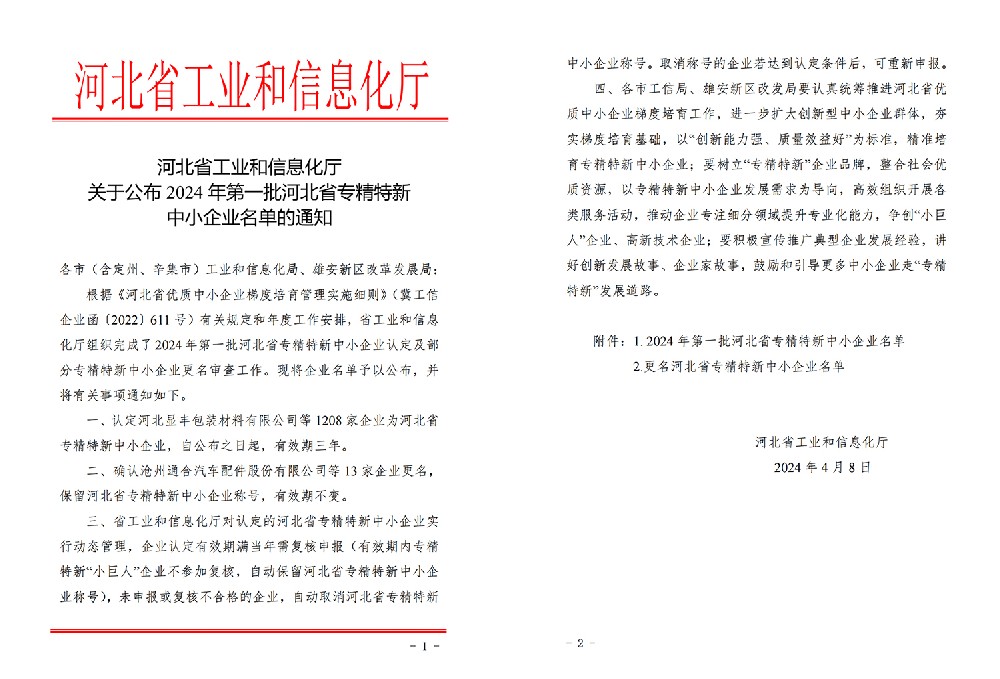 2024年4月8日,河北省工業(yè)和信息化廳公布“2024年第一批河北省專精特新中小企業(yè)名單”,邯鄲市禾下土種業(yè)有限公司被認定為河北省專精特新中小企業(yè)。“專精特新”是國家為引導(dǎo)中小企業(yè)走專業(yè)化、精細化、特色化、新穎化發(fā)展之路,增強自主創(chuàng)新能力和核心競爭力,不斷提高中小企業(yè)發(fā)展質(zhì)量和水平而實施的重大工程!專精特新企業(yè)聚焦關(guān)鍵技術(shù)、推動產(chǎn)品與技術(shù)創(chuàng)新,是增強經(jīng)濟韌性、提升產(chǎn)業(yè)鏈供應(yīng)鏈現(xiàn)代化水平的關(guān)鍵主體,也是激發(fā)創(chuàng)新活力、完善產(chǎn)業(yè)生態(tài)不可或缺的重要力量!此次禾下土入選“2024年第一批河北省專精特新中小企業(yè)名單”,是對禾下土技術(shù)創(chuàng)新水平、成果轉(zhuǎn)化應(yīng)用能力和企業(yè)發(fā)展實力的高度肯定。邯鄲市禾下土種業(yè)有限公司專注脫毒甘薯領(lǐng)域22年,是該領(lǐng)域貫穿科學(xué)-技術(shù)-產(chǎn)業(yè)的核心力量。作為國家種業(yè)陣型企業(yè),集科研育種、...