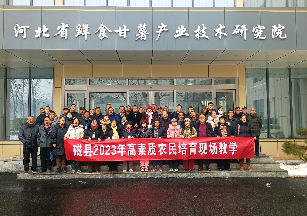 2023年12月29日,磁縣農(nóng)業(yè)農(nóng)村局組織60余位高素質(zhì)農(nóng)民到禾下土參觀學(xué)習(xí)。公司副總經(jīng)理崔永平帶領(lǐng)學(xué)員們參觀了甘薯綜合展廳,詳細(xì)了解甘薯的發(fā)展歷史以及禾下土在甘薯產(chǎn)業(yè)領(lǐng)域的創(chuàng)新發(fā)展。在會(huì)議室座談會(huì)中,公司技術(shù)人員分享了甘薯高產(chǎn)栽培的種植經(jīng)驗(yàn),副總經(jīng)理鄒義杰表示希望與有意愿種植甘薯的農(nóng)民進(jìn)行深度合作。