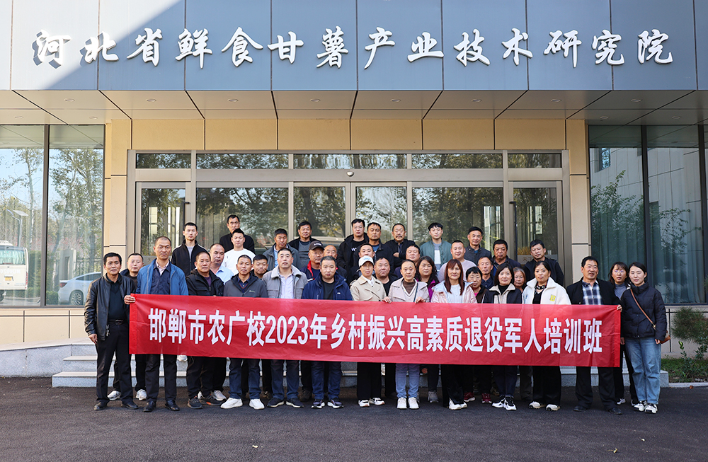 2023年11月17日,邯鄲市農(nóng)業(yè)廣播電視學(xué)校組織高素質(zhì)退役軍人培訓(xùn)班的50余位學(xué)員到禾下土參觀學(xué)習(xí)。培訓(xùn)學(xué)員一行參觀了甘薯綜合展廳,品嘗了最新選育的甘薯新品種,深入了解了禾下土在甘薯產(chǎn)業(yè)所取得的新技術(shù)、新成果和發(fā)展新趨勢(shì)。通過本次參觀學(xué)習(xí),拓展了學(xué)員視野、傳遞了甘薯種植新工藝、新技術(shù)。