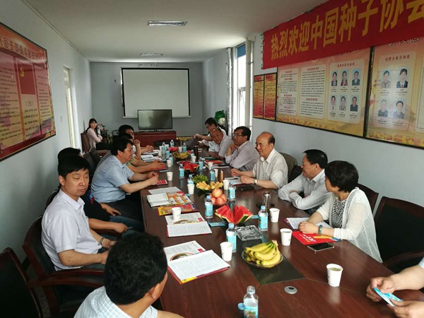 2016年5月24日上午,中國種子協(xié)會秘書長李立秋到邯鄲調(diào)研種子企業(yè)經(jīng)營狀況,河北省種子協(xié)會秘書長封五平、邯鄲市農(nóng)業(yè)局局長李文杰陪同調(diào)研。邯鄲市種業(yè)協(xié)會全體會長、副會長參加會議。李立秋秘書長就新種子法內(nèi)容進行了解讀,對種子企業(yè)未來人才引進、合作發(fā)展、加強科研投入、拓展視野、專業(yè)發(fā)展等提出寶貴建議,對禾下土脫毒甘薯種苗特色產(chǎn)業(yè)取得成績給予肯定并給予支持。