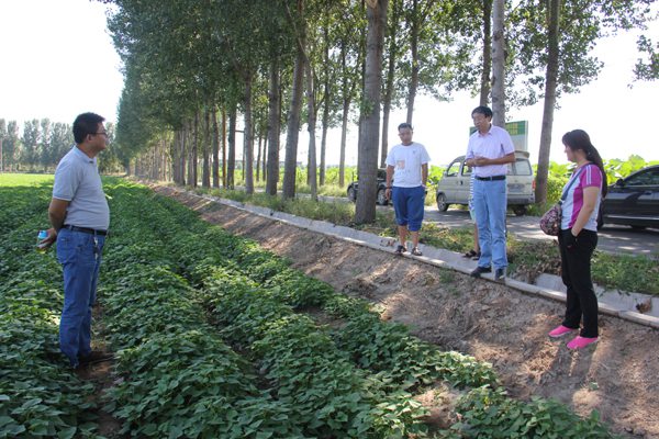 2016年9月2日,河北威遠生化農(nóng)藥有限公司華北區(qū)工作組一行6人到禾下土脫毒甘薯原種薯基地現(xiàn)場觀摩,邯鄲市禾下土種業(yè)有限公司總經(jīng)理崔伏喜陪同參觀。工作組詳細了解了禾下土脫毒甘薯原種薯生產(chǎn)基地在科研育種、標準化生產(chǎn)、病蟲草害防治的工作開展情況,并圍繞脫毒甘薯產(chǎn)業(yè)在紅薯專用生物農(nóng)藥、生物肥料等方面進行了深入探討。