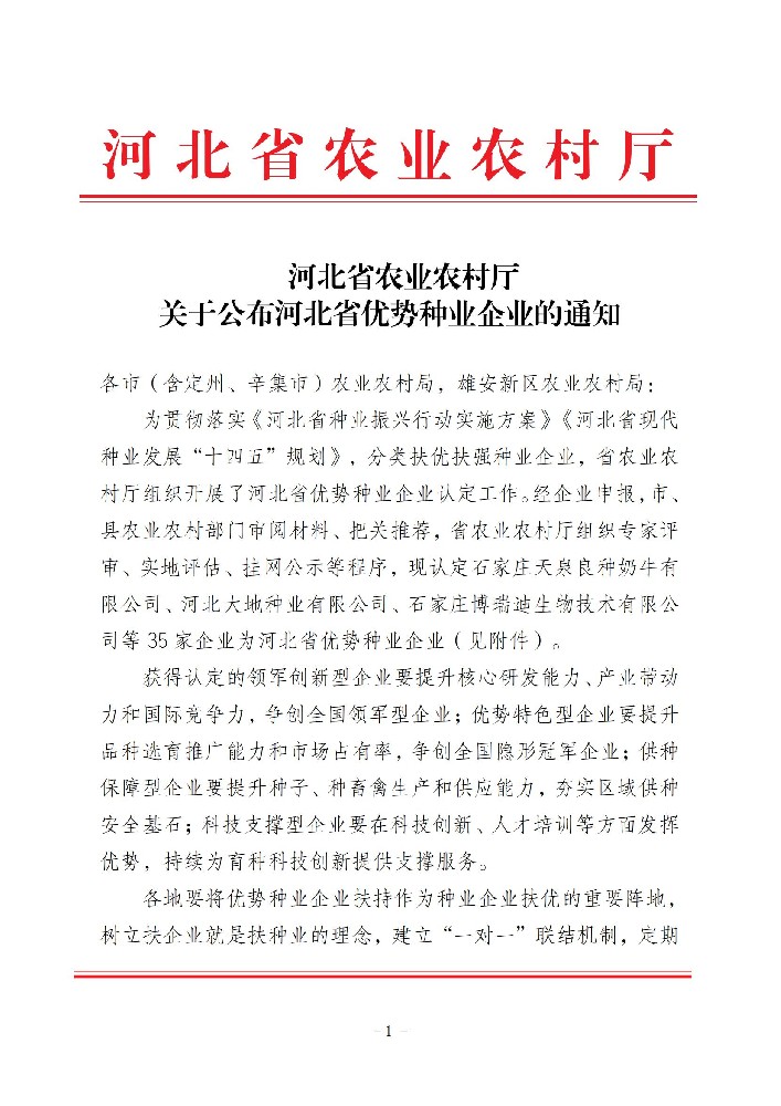 2025年4月15日,河北省農(nóng)業(yè)農(nóng)村廳發(fā)布“關(guān)于公布河北省優(yōu)勢種業(yè)企業(yè)的通知”,邯鄲市禾下土種業(yè)有限公司成功通過認(rèn)定。次日,邯鄲市農(nóng)業(yè)農(nóng)村局轉(zhuǎn)發(fā)該通知,進(jìn)一步彰顯了地方政府對種業(yè)發(fā)展的重視與支持。為深入貫徹落實(shí)《河北省種業(yè)振興行動實(shí)施方案》和《河北省現(xiàn)代種業(yè)發(fā)展“十四五”規(guī)劃》,推動種業(yè)企業(yè)高質(zhì)量發(fā)展,實(shí)現(xiàn)對種業(yè)企業(yè)的分類扶優(yōu)扶強(qiáng)。河北省農(nóng)業(yè)農(nóng)村廳組織開展了河北省優(yōu)勢種業(yè)企業(yè)認(rèn)定工作,經(jīng)過企業(yè)申報、市縣農(nóng)業(yè)農(nóng)村部門審閱推薦、專家評審、實(shí)地評估和掛網(wǎng)公示等一系列嚴(yán)格程序,最終認(rèn)定了35家企業(yè)為河北省優(yōu)勢種業(yè)企業(yè)。邯鄲市禾下土種業(yè)有限公司的入選,是對禾下土技術(shù)創(chuàng)新水平、成果轉(zhuǎn)化應(yīng)用能力和企業(yè)發(fā)展實(shí)力的高度肯定。邯鄲市禾下土種業(yè)有限公司作為全國甘薯作物國家種業(yè)陣型企業(yè),堅(jiān)持專注脫毒甘薯產(chǎn)...